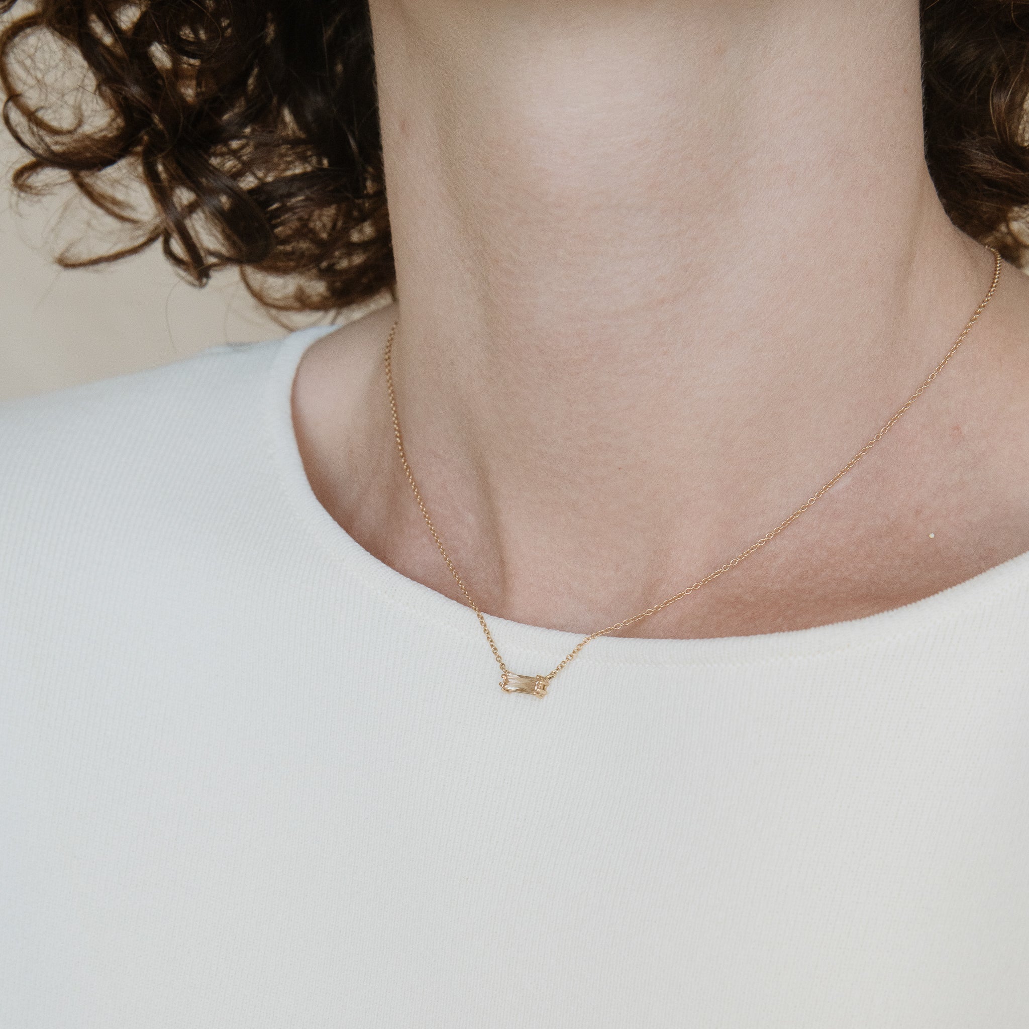 Una circonita de corte baguette se convierte en el centro de este diseño minimalista en oro de 18K. Un gesto de elegancia sobria, pensado para llevar solo o en diálogo con nuestras cadenas clásicas.