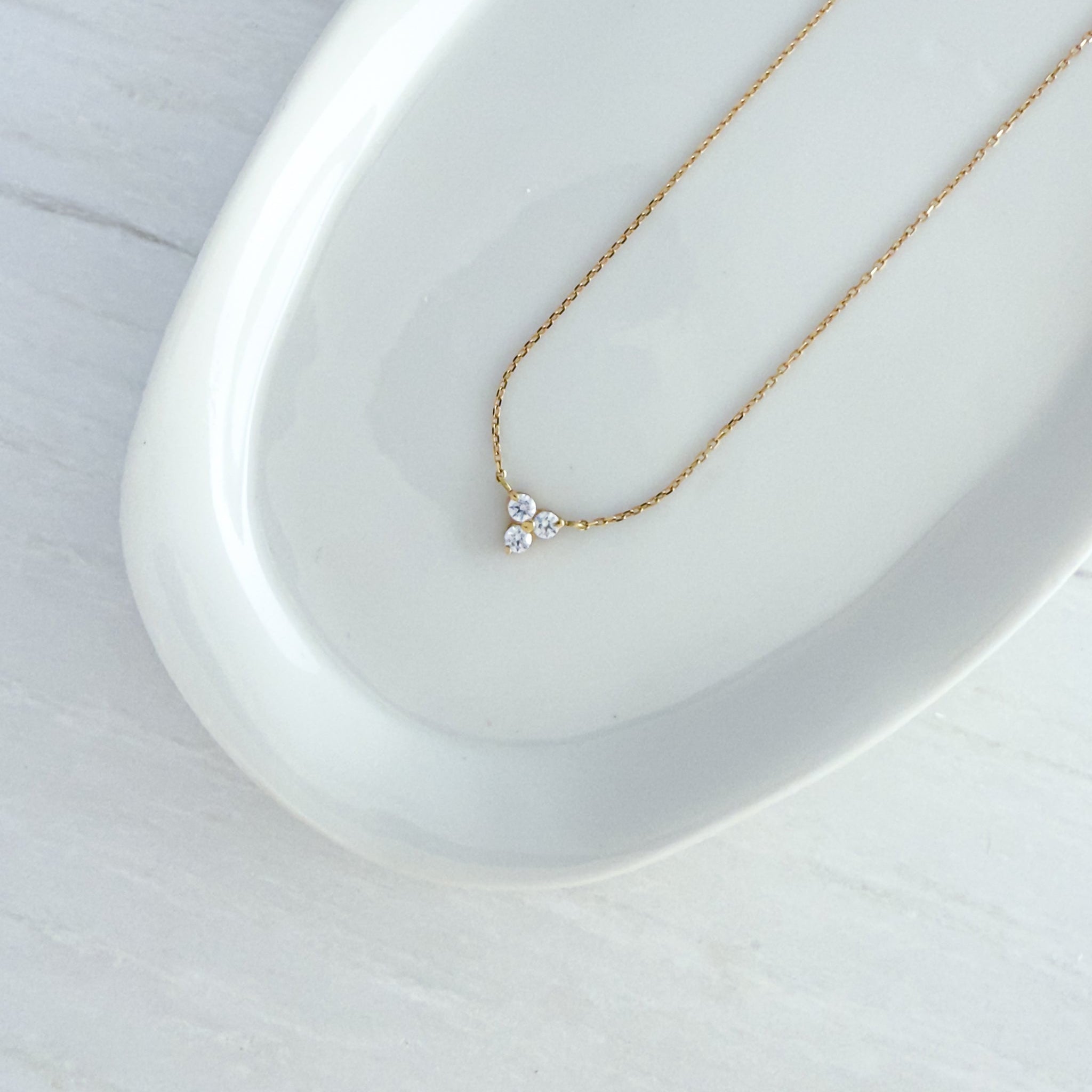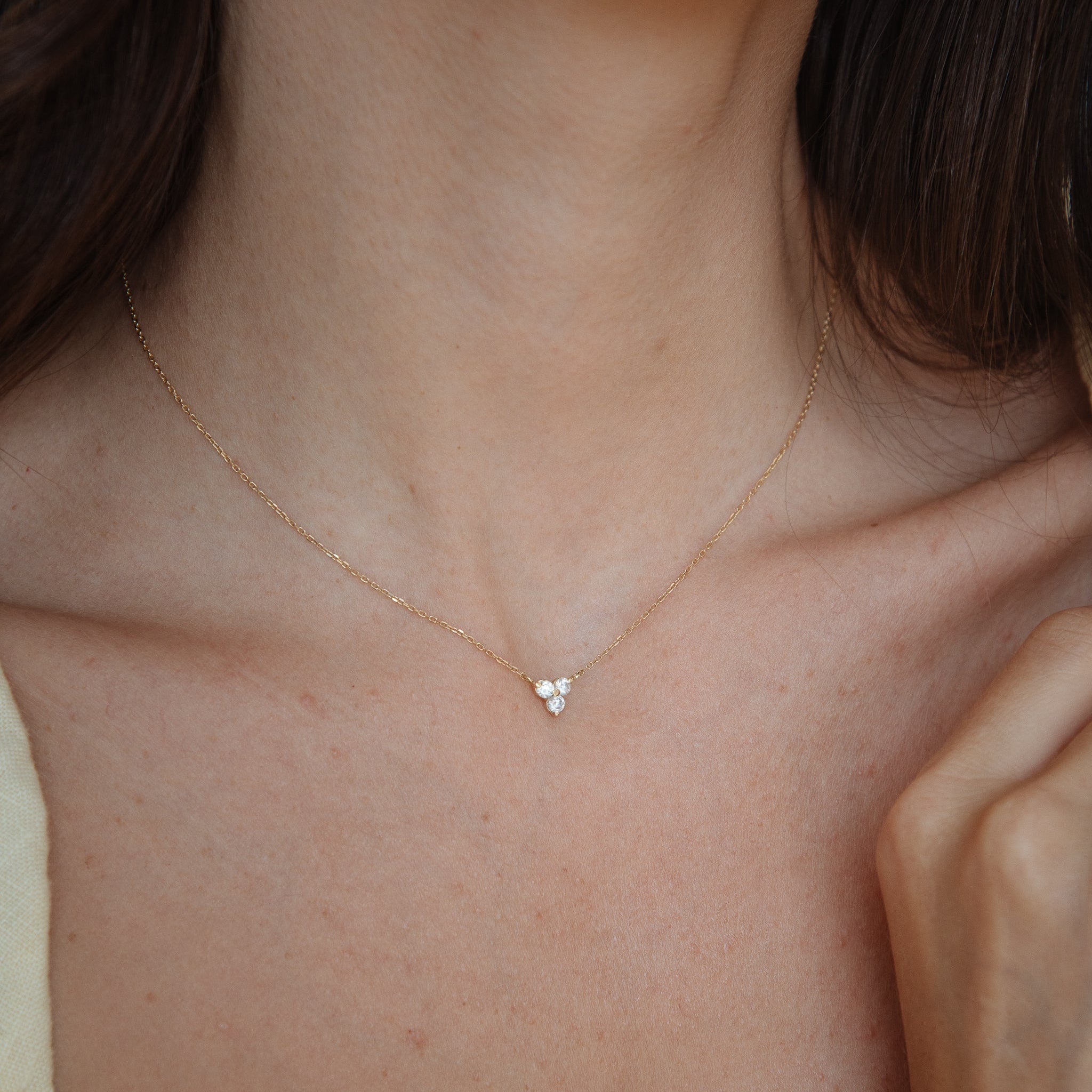Un diseño atemporal en oro de 18K que simboliza la unión y equilibrio. Tres circonitas engastadas en garras clásicas capturan la luz con delicadeza. Sofisticado y versátil, aporta un brillo sutil que realza cualquier look.