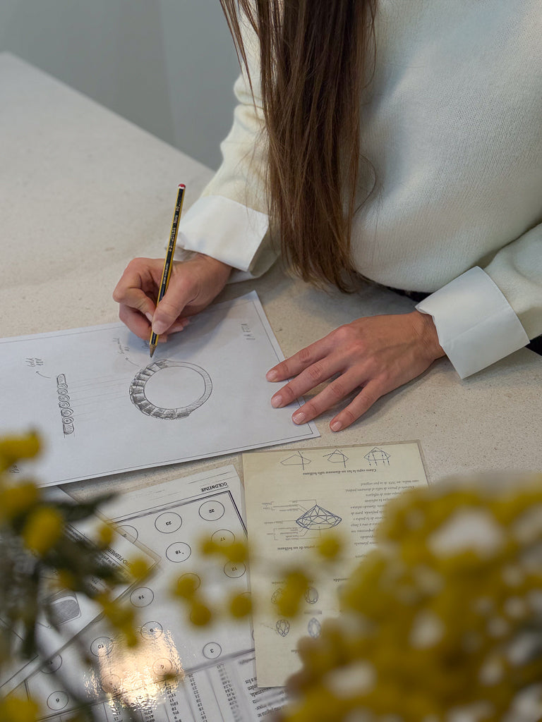 Nuestros diseñadores trazan bocetos que recogen tu esencia. Puedes decidir cada detalle: desde la forma hasta la piedra. El diseño se va ajustando contigo hasta que sientas que es el tuyo.